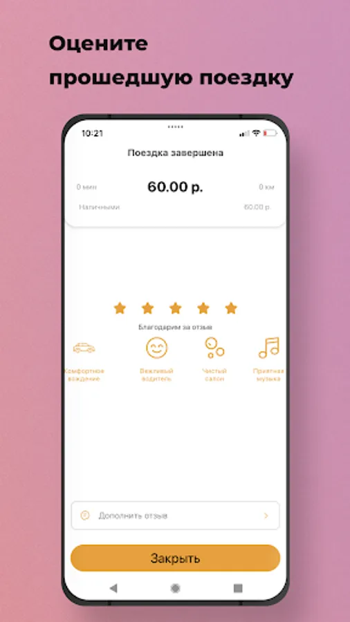 Rate the driver, write a review, or select a reaction from ready-made templates.
