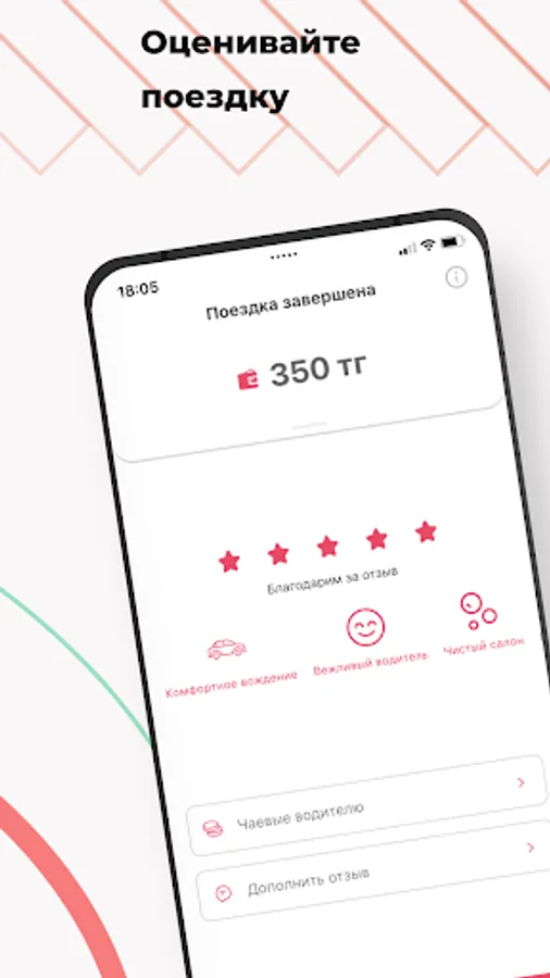 Rate your trip with ready-made templates. Thank the driver with a tip or see payment details after the trip.