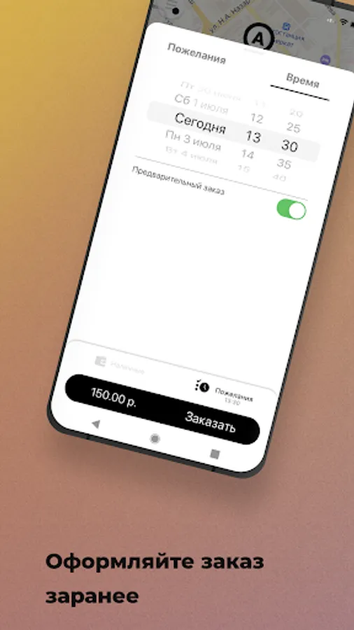 Need a courier by a specific time and date? Order delivery in advance through the application, and at the appointed time it will be waiting for you at the entrance.