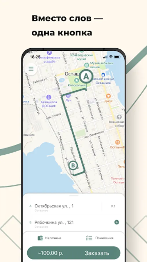 Order Taxi Favorite in the city Ostashkov through the application. It's 3 times faster than by phone! Between the desire to get to the right place and the search for a car - a couple of seconds.