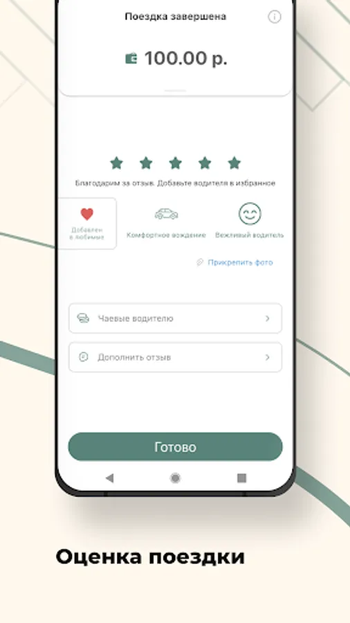 Rate the driver, write a review, or select a reaction from ready-made templates. Attach a photo to a review, leave a tip.