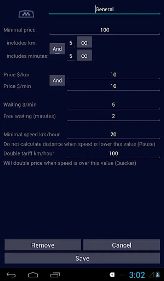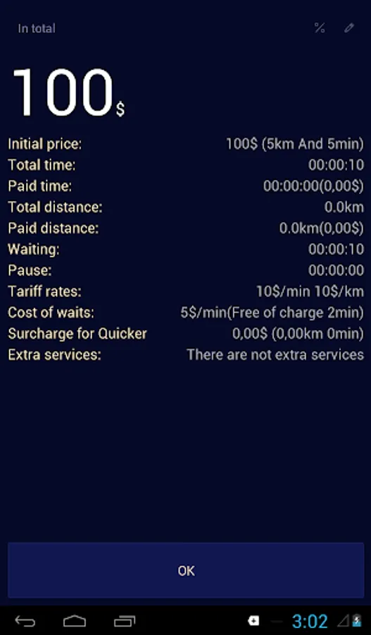 Flexible setting of tariffs: "minimal", the cost of mileage and time, cost of waiting, cost of movement by the camp, double tariff for those who need to arrive faster. You can add services, make a discount. We offer several tariffs. You can change them or create your own. You need not create a tariff from scratch or you can copy an existing one, and delete those that you are not needed. You can set tariffs for your taste or carry on tariffs of aggregators or dispatcher service of your region. You can configure and add additional services, such as children's chair, luggage, transportation of animals, etc. Add or remove services during the trip.