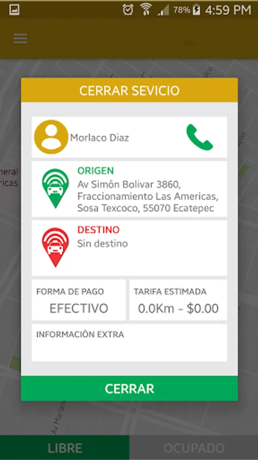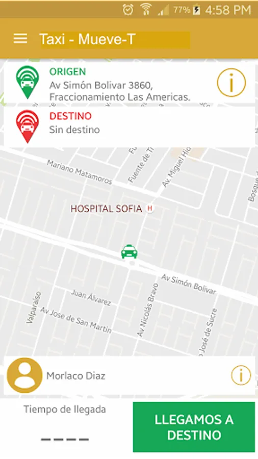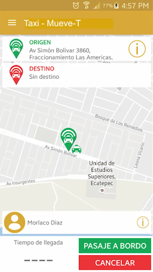 The Move-T system allows requests for taxi services. Will allow the client user, generate service requests indicating the origin and destination of travel direction. And if required, you can tell the driver extra information required for service.