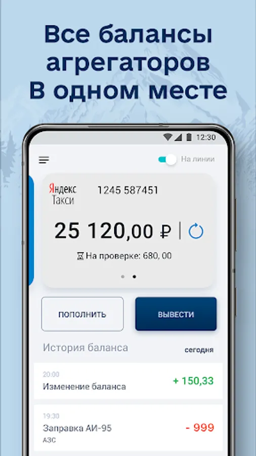 An application for taxi drivers, cargo transportation, auto and foot couriers: instant payments, payment history, reconciliations and reports, communication with the AK BARS dispatching park. Convenient and easy to use application.