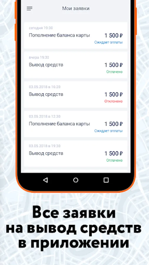 Drivers manage their own earnings and independently generate withdrawals of earned funds. You do not need to come to the cashier to receive money. The requested amount is transferred to the card of any bank within 1-2 minutes. With the ATP99 application, the work of taxi drivers becomes comfortable and enjoyable. All emerging issues can be resolved remotely.