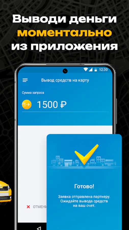 Приложение "Олимп" помогает вывести деньги из Таксометра за считанные минуты. Нужно только привязать банковскую карту, ввести необходимую сумму - и заработок уже у тебя в руках!
