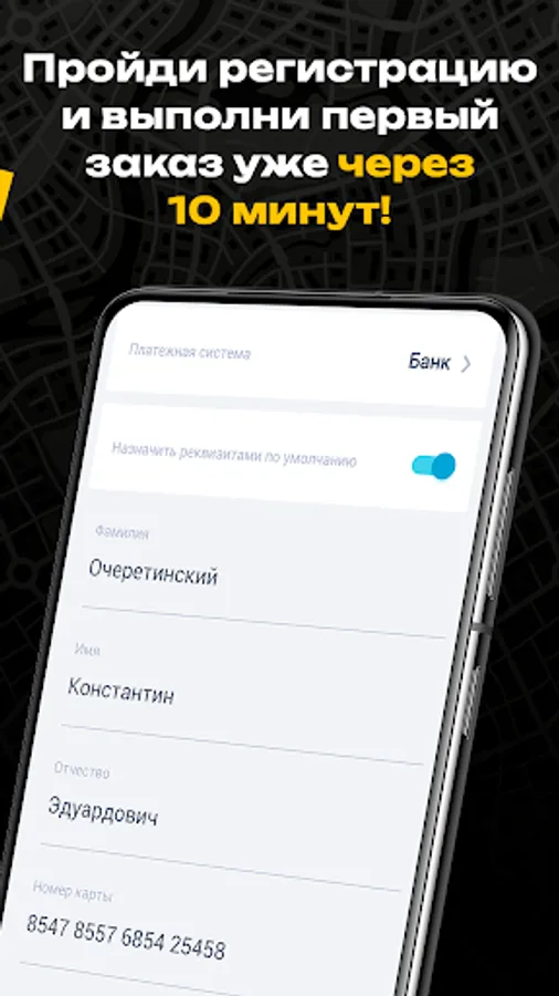 Всем нашим водителям мы предлагаем ряд преимуществ, среди которых быстрое подключение к заказам, моментальный вывод денежный средств на банковскую карту по реквизитам карты или по номеру телефона, круглосуточная техподдержка по любым вопросам.