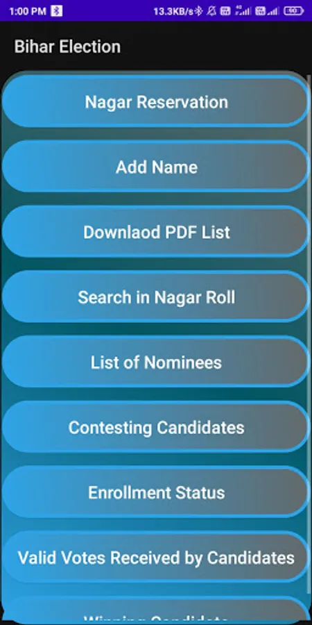 1. "Bihar Election" needs to connect to State Election Commission Server to work smoothly. So ensure that internet connectivity is available on your phone.