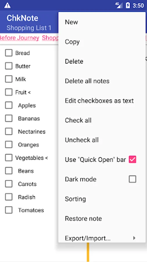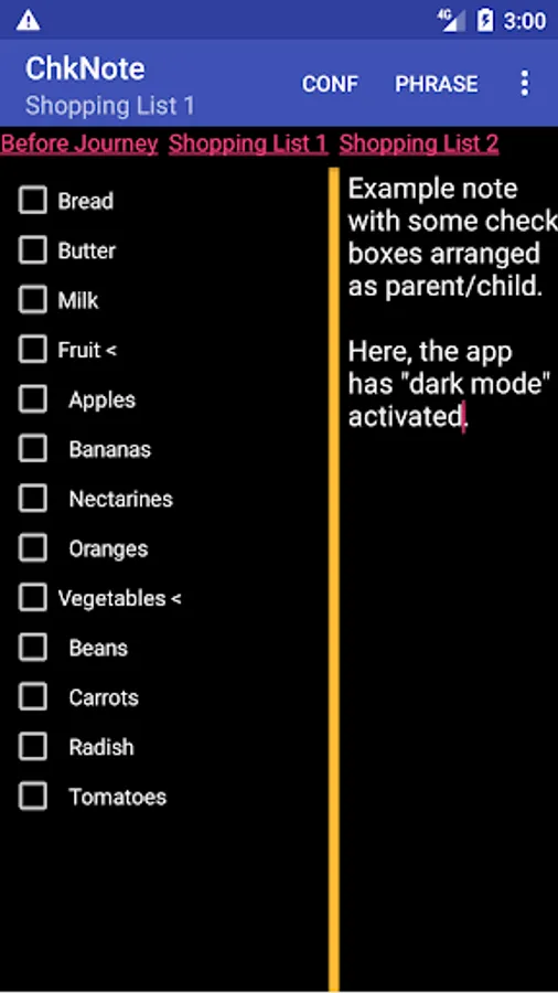 ChkNote is a simple and small Android app for taking notes and, optionally, combine the notes with a checklist.