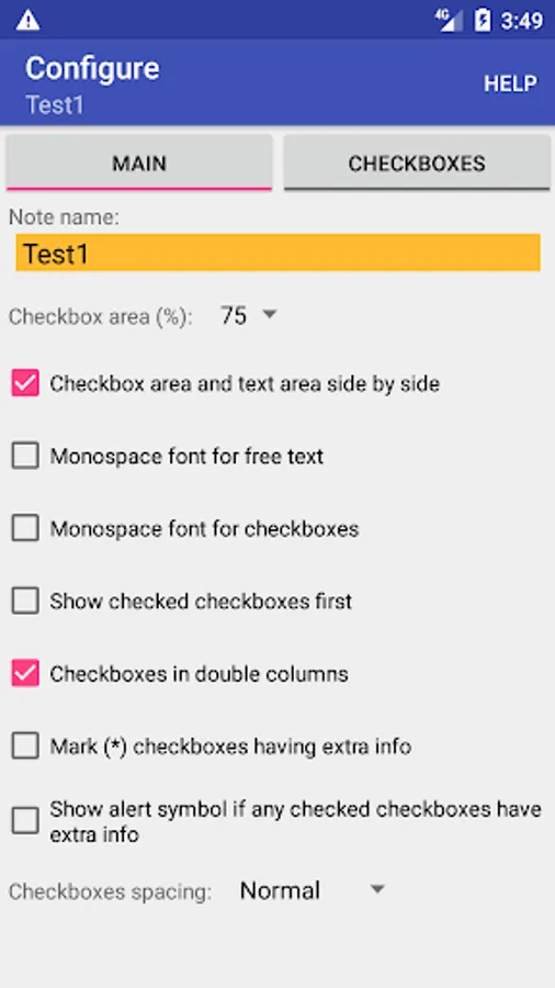 For each individual note you can configure how much of the screen will be occupied by the checkbox area and the free text area respectively - from 0 to 100%.
