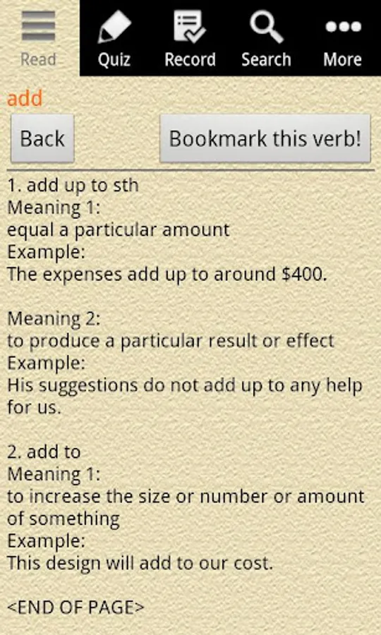 ★ CONVENIENT design for revision: During the quiz game, you can choose to display the details of the phrasal verb related to question you just answered. Moreover, you can create your own phrasal verb list so that you can do revision on what you have learned much more easily!
