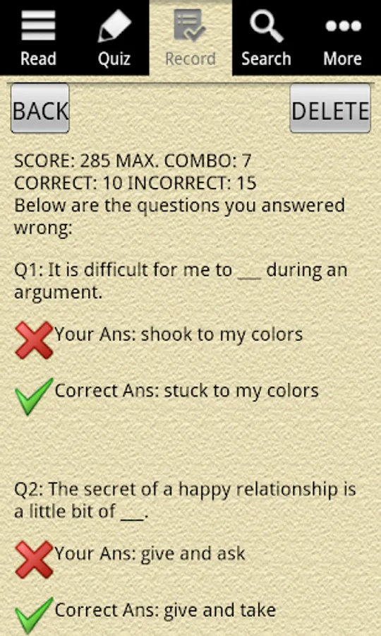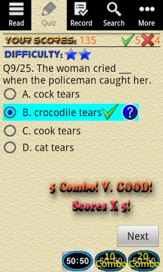 ★ CONVENIENT design for revision: During the quiz game, you can choose to display the details of the idiom related to question you just answered. Moreover, you can create your own idiom list so that you can do revision on what you have learned much more easily!