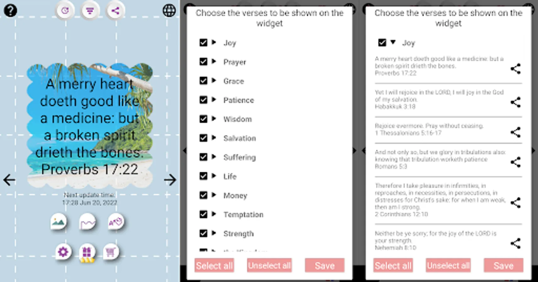 -the categories to be displayed (the verses will be displayed on the widget randomly according to the categories you have chosen)
