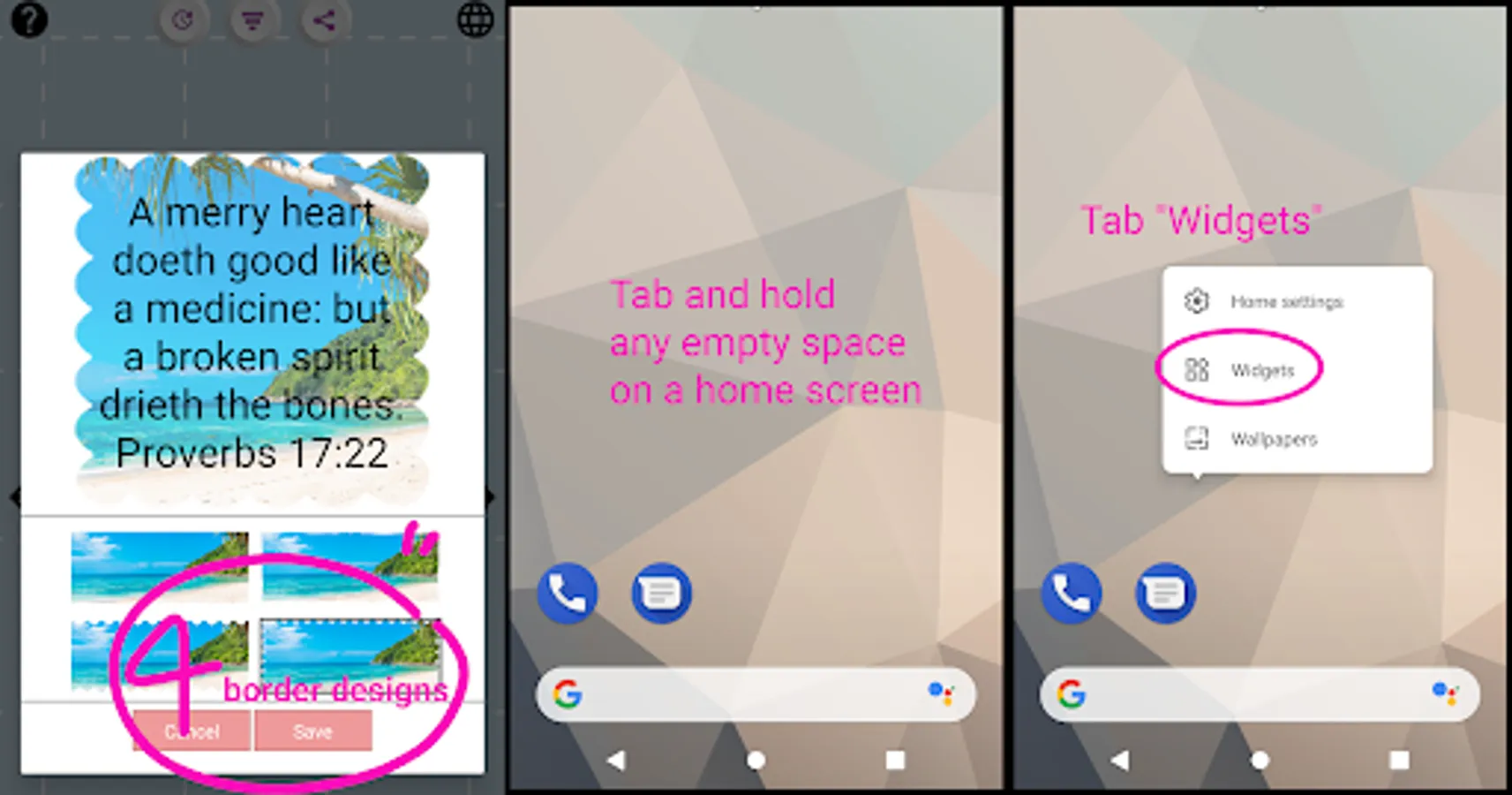 ●Display Bible verses on the homescreen of your device with beautiful backgrounds