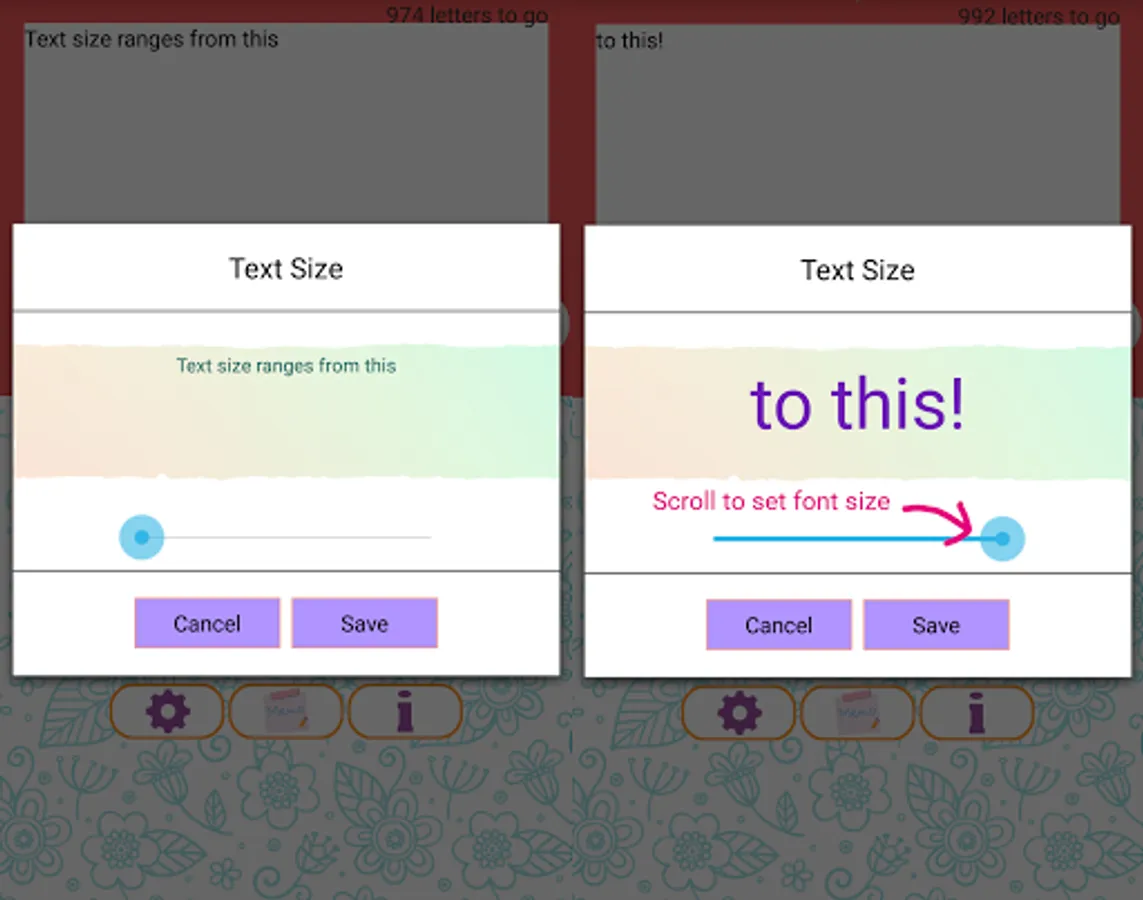 - Different font sizes and colors