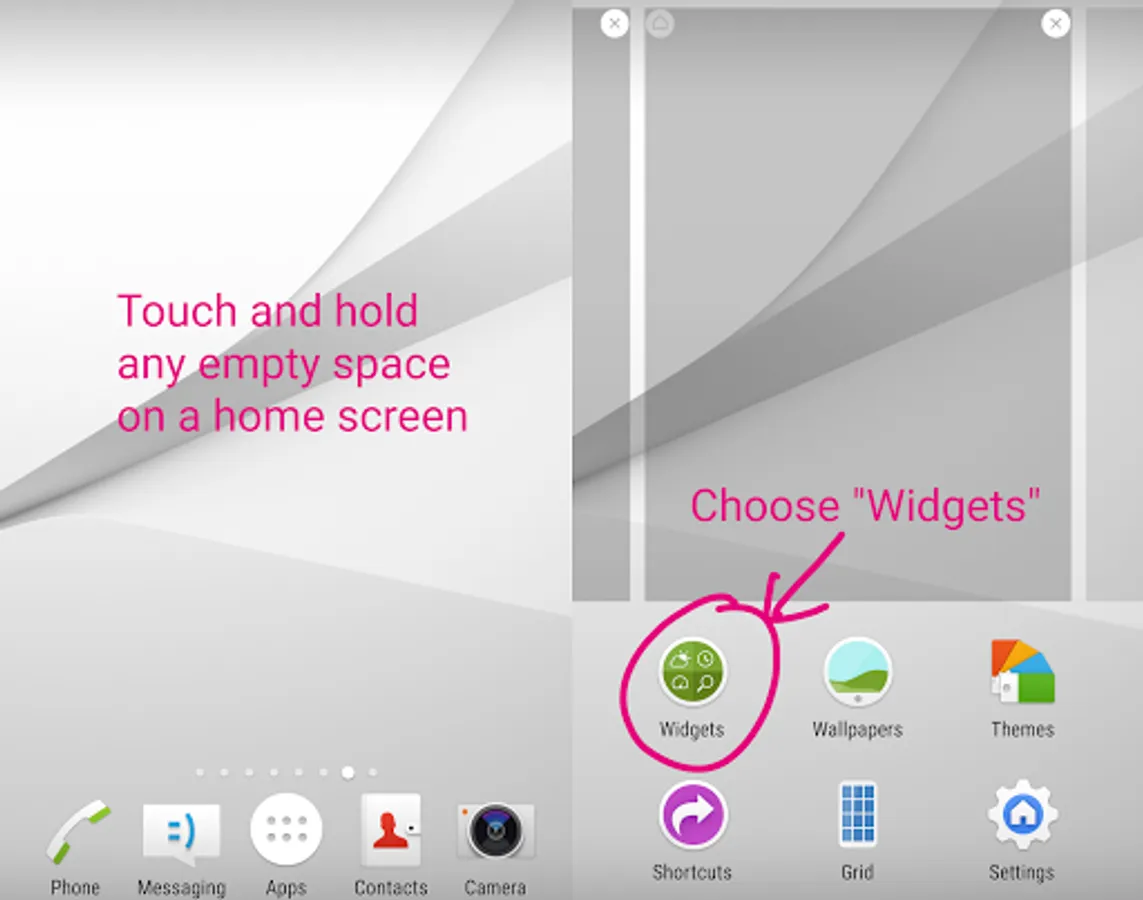 1. Touch and hold any empty space on a Home screen.