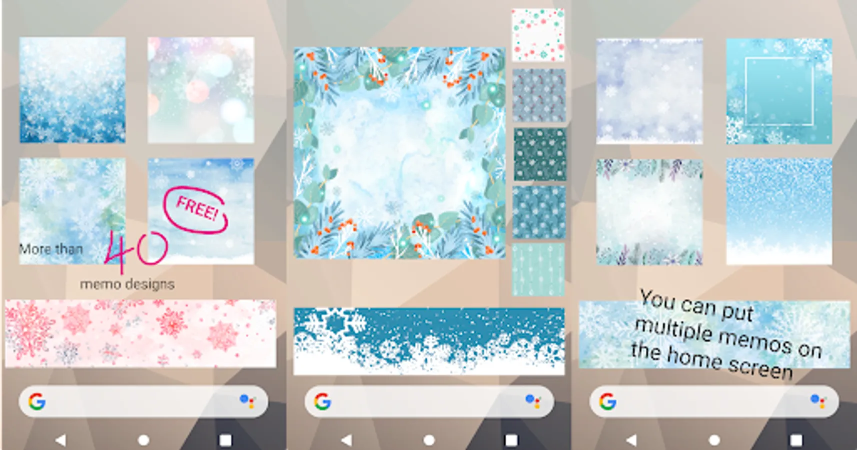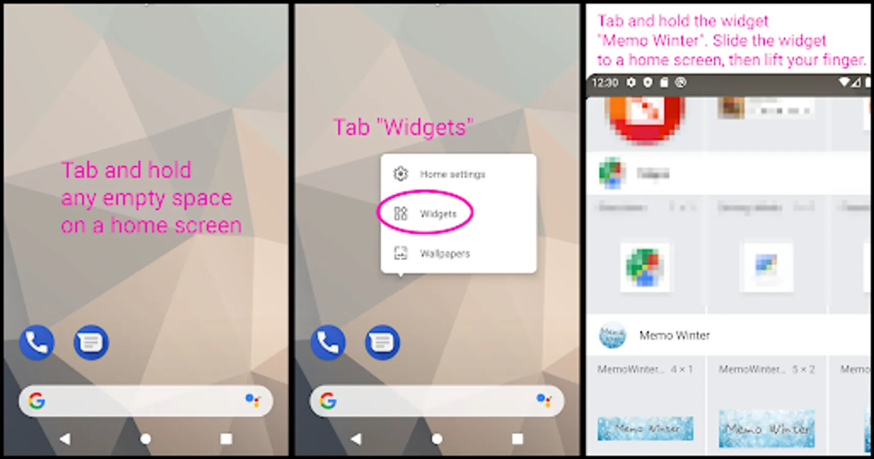 3. Touch and hold the widget "Memo Winter". You'll see images of each Home screen.