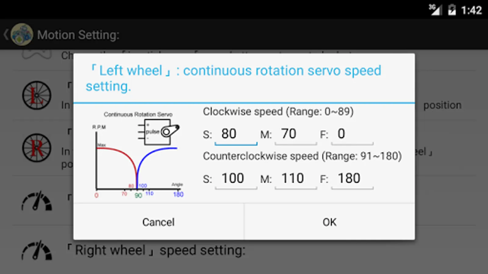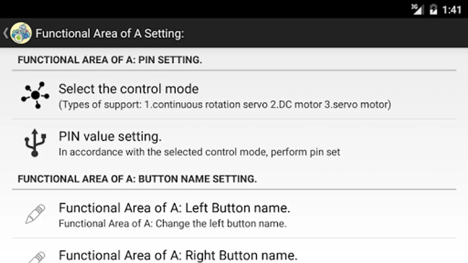 a. choose three different modes (continuous rotation servos, angle servo or DC servo motors).