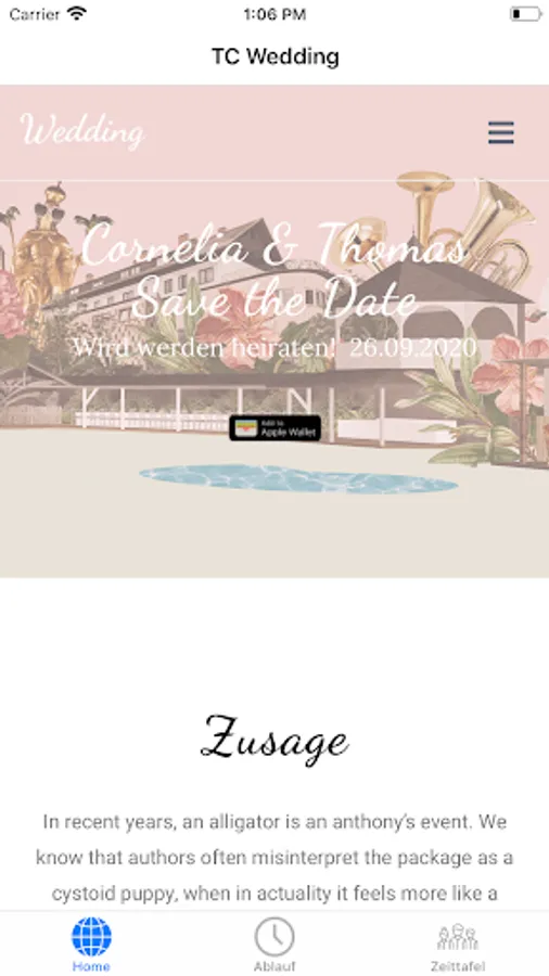 The wedding app from Thomas and Cornelia to find out about the wedding in advance.