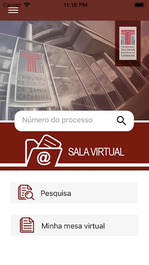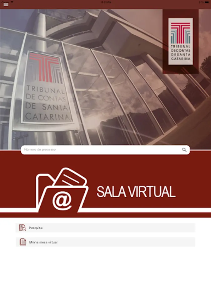 The application "Virtual Room" enables access to files of the Santa Catarina Court of Auditors (ECA / SC) through mobile devices. The application name is an allusion to the possibility of an individual load on your phone all the processes of TCE / SC you need to perform their work, thus becoming a virtual workroom.