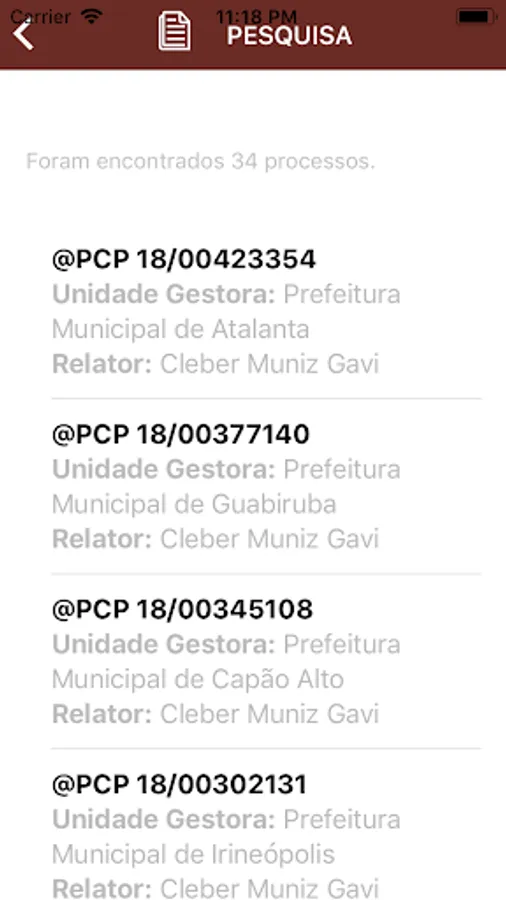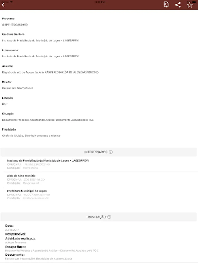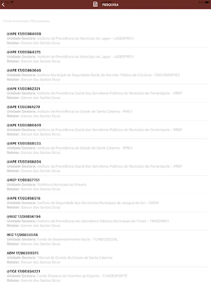 On the application the user has access to all the processes of the TCE / SC and can view all their parts, as well as related information such as sessions in which the process was marked, their votes and decisions.
