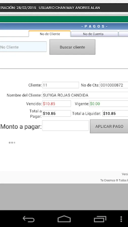 Application that allows you Claiming Managers believe SA de C.V. SFP, make mobile collection through the SmartPhone.