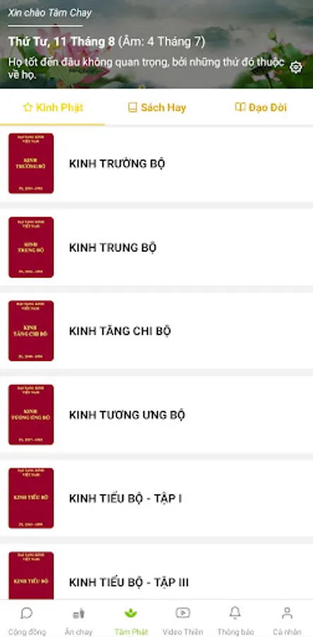 Tam Chay, a free application for the Buddhist community, includes many interesting features including: