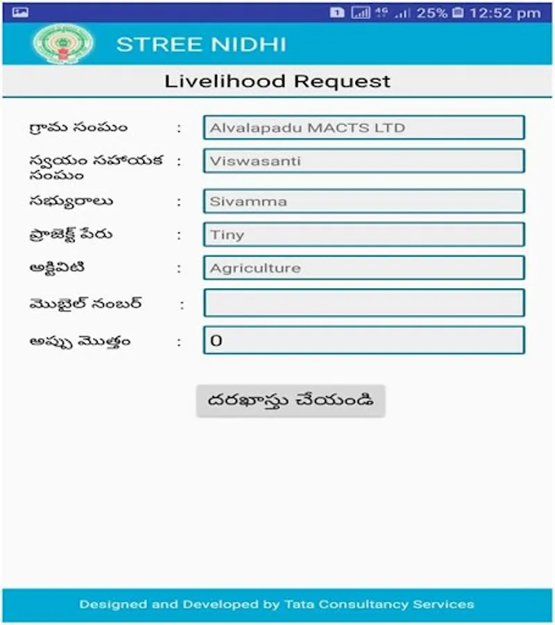 SthreeNidhi credit cooperative Federation Ltd., is promoted by the Government and the Mandal Samkahyas to supplement credit flow from banking sector and is a flagship programme of the Government. SthreeNidhi provides timely and affordable credit to the poor SHG members as a part of the overall strategy of SERP for poverty alleviation. Streenidhi Mobile APP’s owned and currently managed by Streenidhi, Society for Elimination of Rural Poverty, Government of Andhra Pradesh. Mobile application for raising Loan requests and repayment tracking