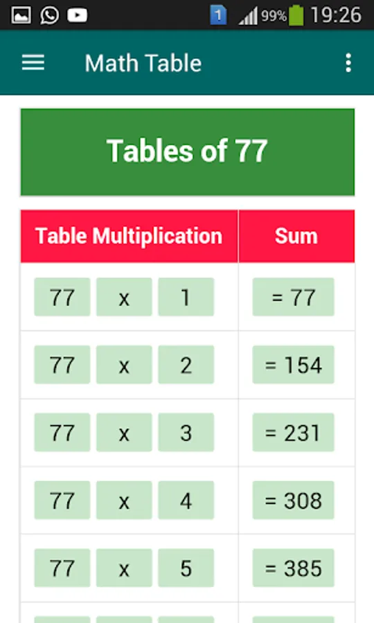 This is the Math Tables learning app for Teacher along with quick search feature. Its easy to use and no login is required. All tables multiples will be displayed one by one by highlighting the row which makes teaching really easy.