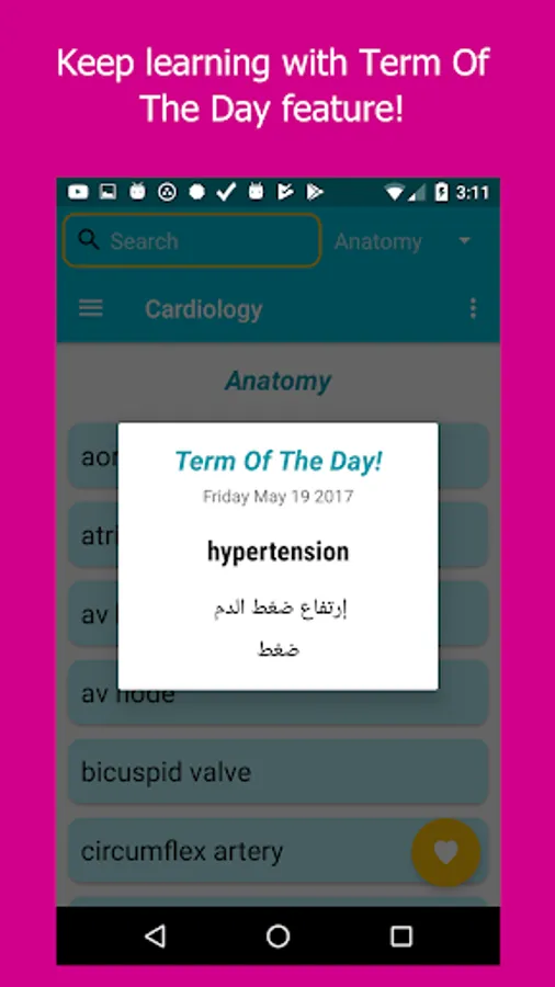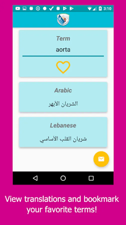 Yes! Translating medical terms between Lebanese spoken Arabic, standard Arabic, and English has never been easier. Through the 3000+ words in this single, easy-to-access app, we hope to facilitate both the medical students' learning experience and facilitate communication with patients on the wards. It can also be used by researchers, patients, as well as other healthcare workers. The app includes a Word of The Day section, bookmarks for easy access of your favorite terms, and a user-friendly interface that allows you to request your own word if it's absent and we'll make sure to add it!