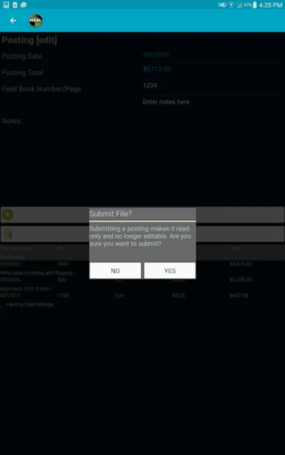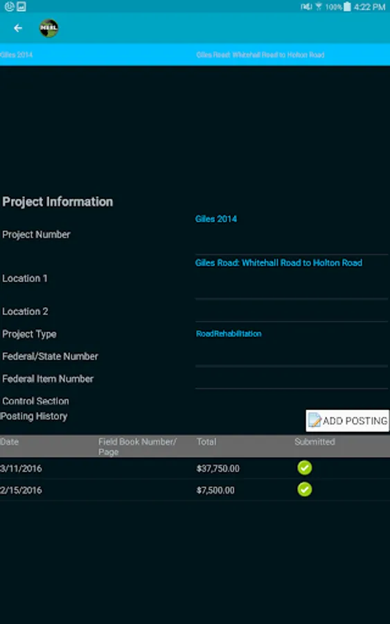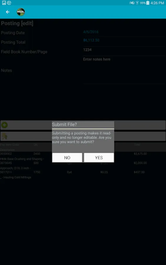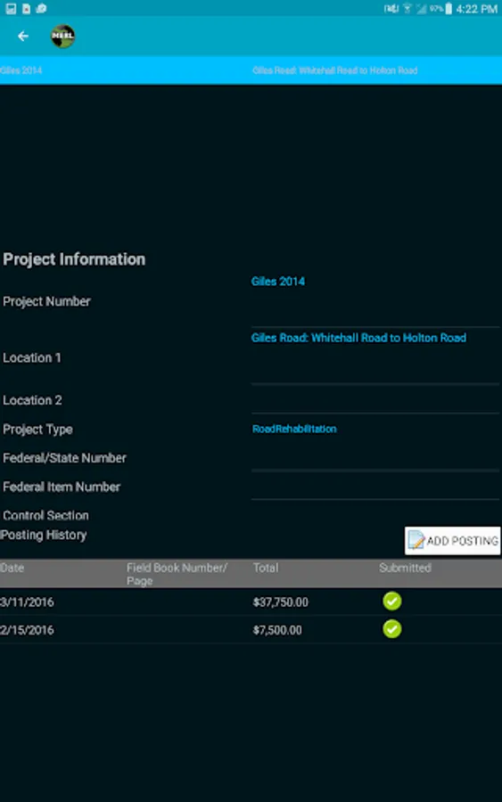 Engineers and inspectors can review past postings, enter new daily postings, update project pay items and submit their postings for download to the database – all from the job site, from the parking lot, or anywhere in-between.