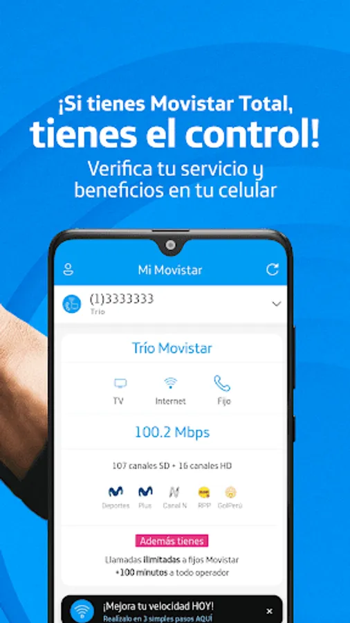 Do you have the Movistar Total plan? From the Mi Movistar App you can check your service, buy premium equipment and channels and pay your bills. 100% online and without waiting.