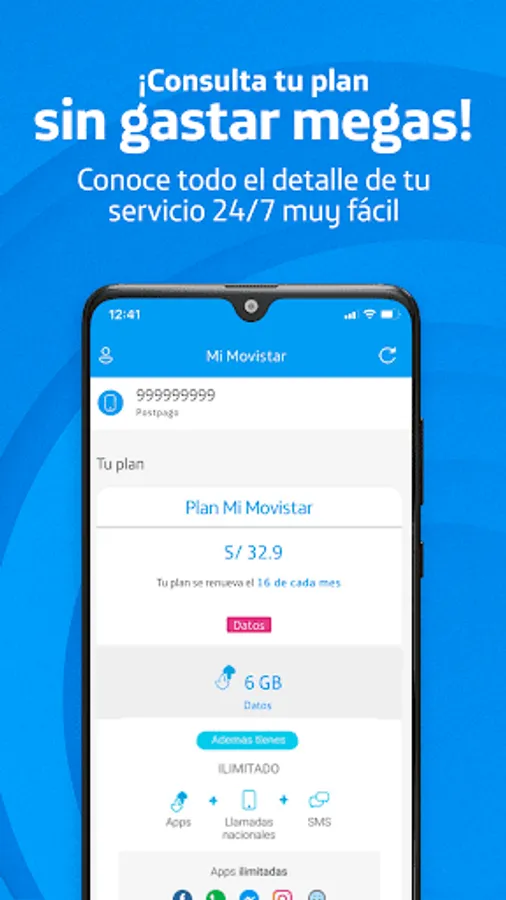 Use the Mi Movistar Peru App to make inquiries, recharge your balance without consuming data, change plans, check balances and pay bills for Mobile, Home and Movistar Total services faster, online and without queues. Save time, win prizes and stay up to date with your payments by consulting 100% online on your cell phone from anywhere