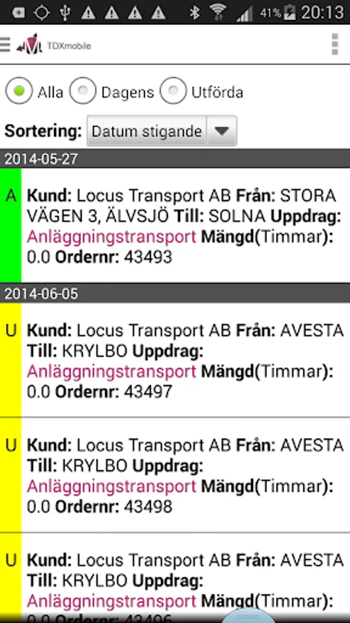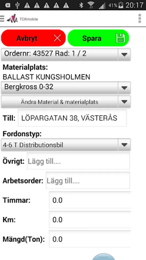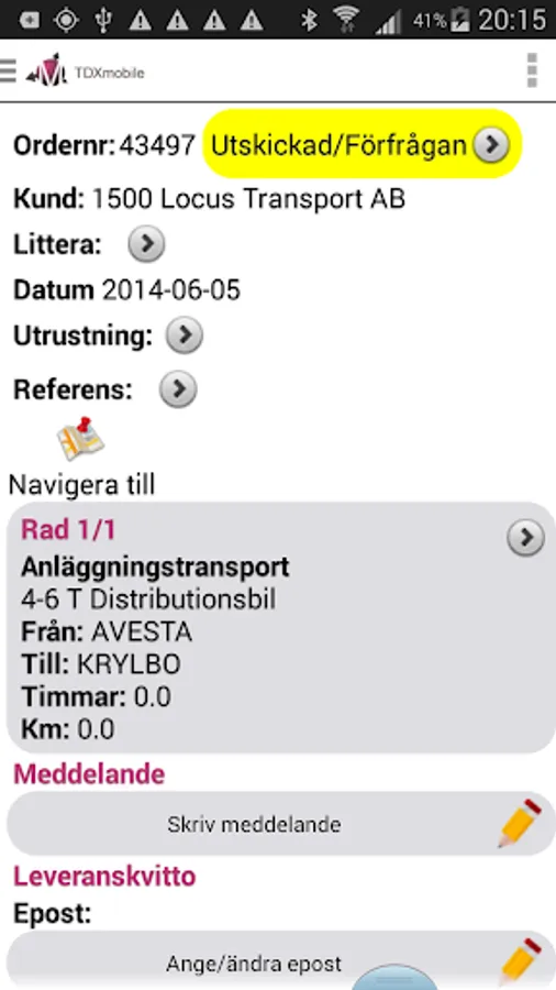 Reporting of hours, miles, quantity, ID, Littera, Fraktsedelsnr and listing.