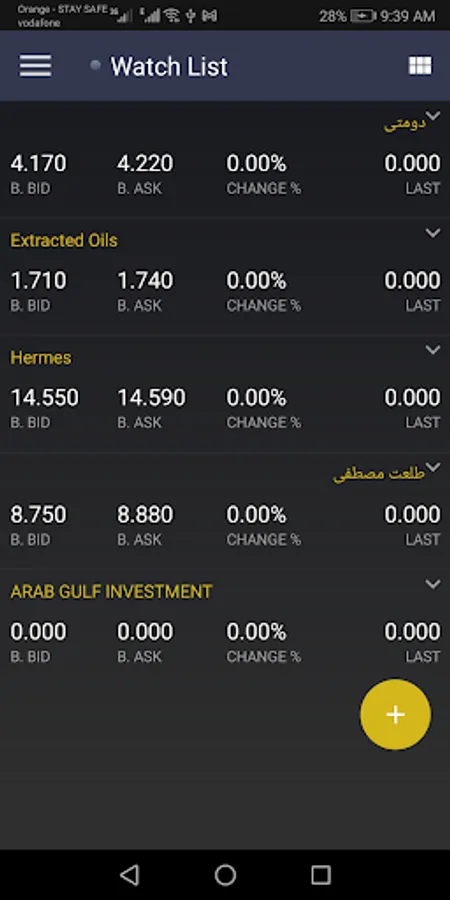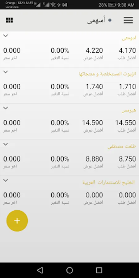1. قائمة الاسهم الخاصة بك واسعاره اللحظية