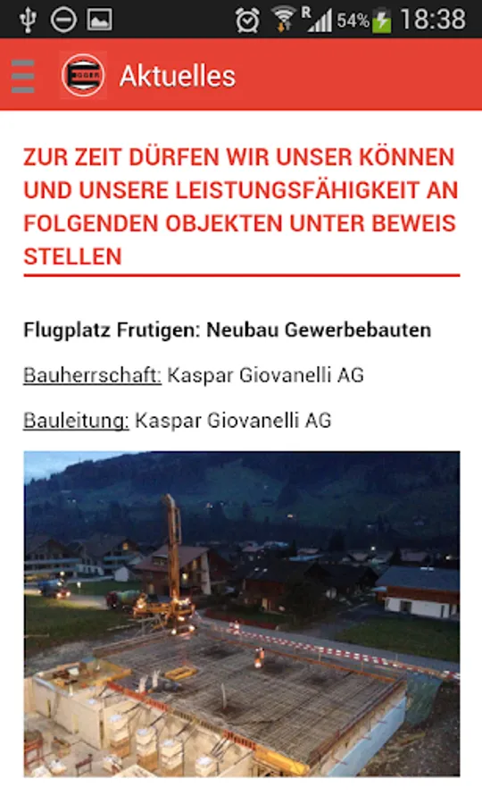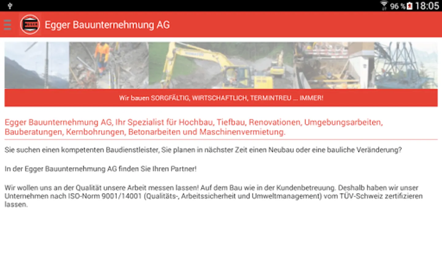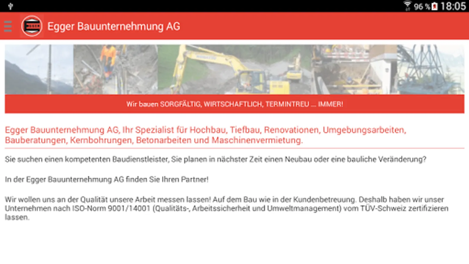 The app for the Egger Construction AG.