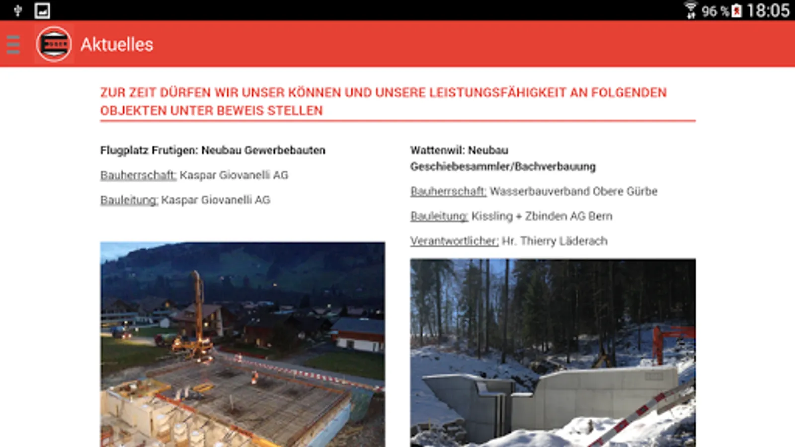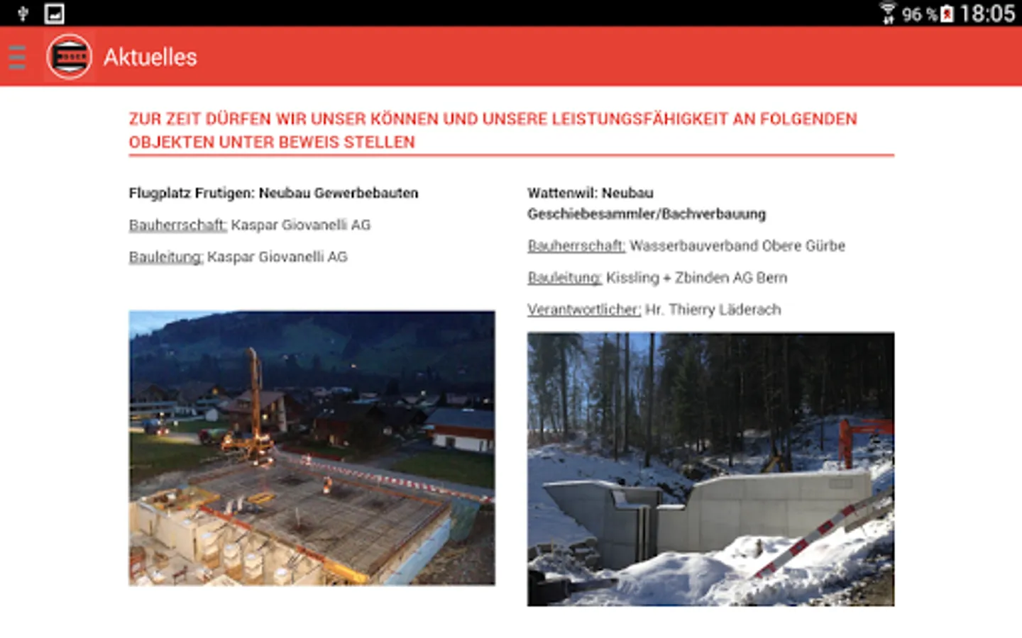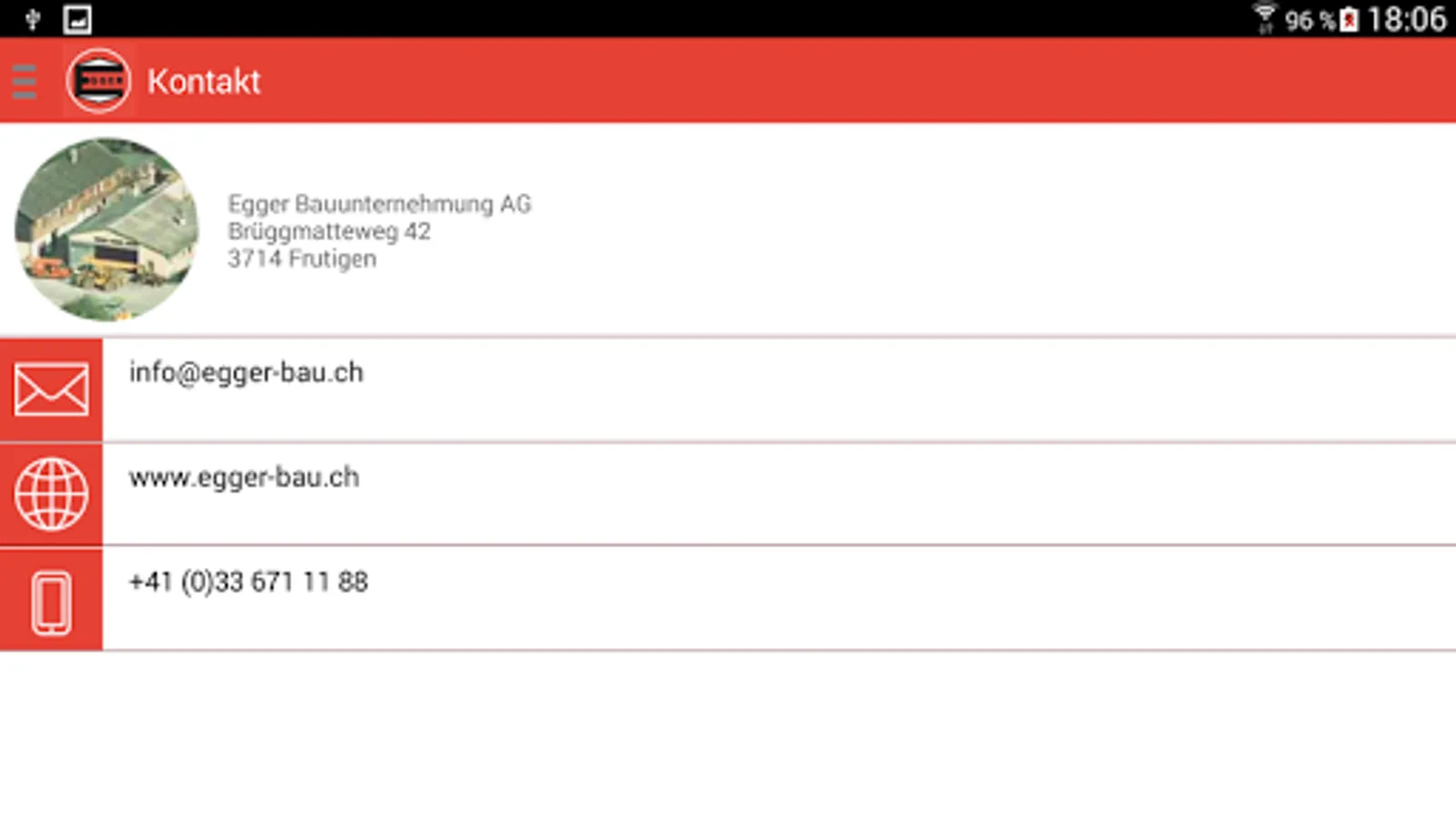 The app for the Egger Construction AG.