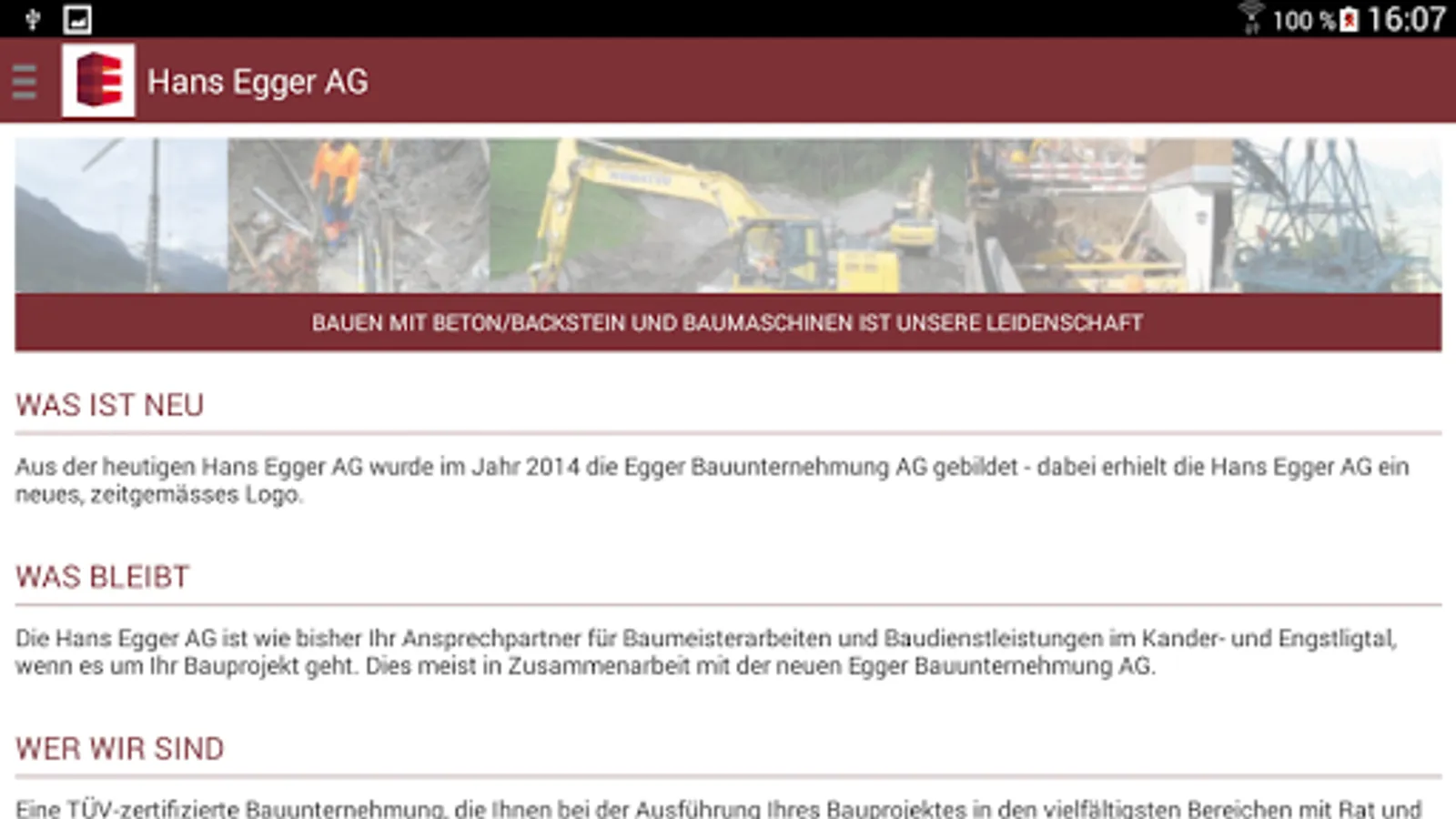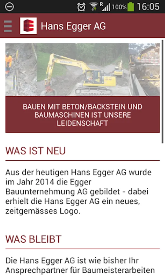 The app for the Hans Egger AG - construction company. Stay in touch with us.