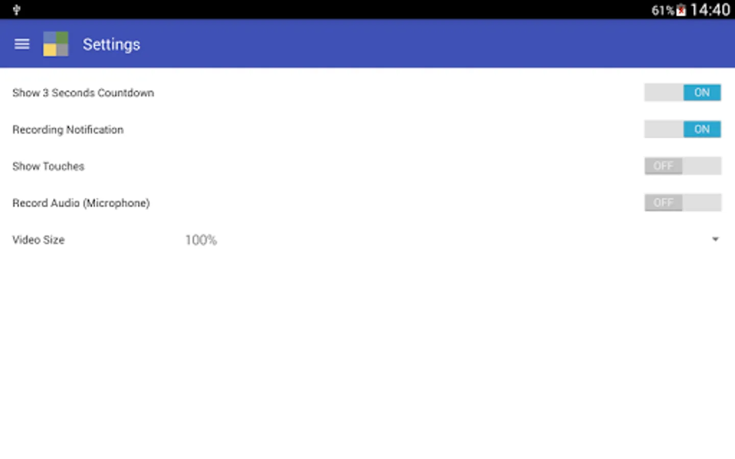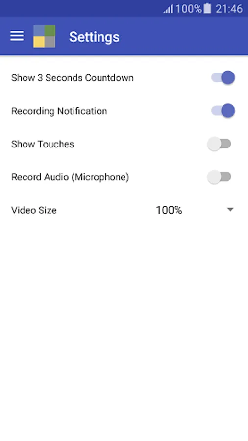The app is easy to use and can even display touch gestures and record your voice. Before a recording starts, there is a 3 second countdown. Thus, you can perfectly prepare the initial setup for each recording.