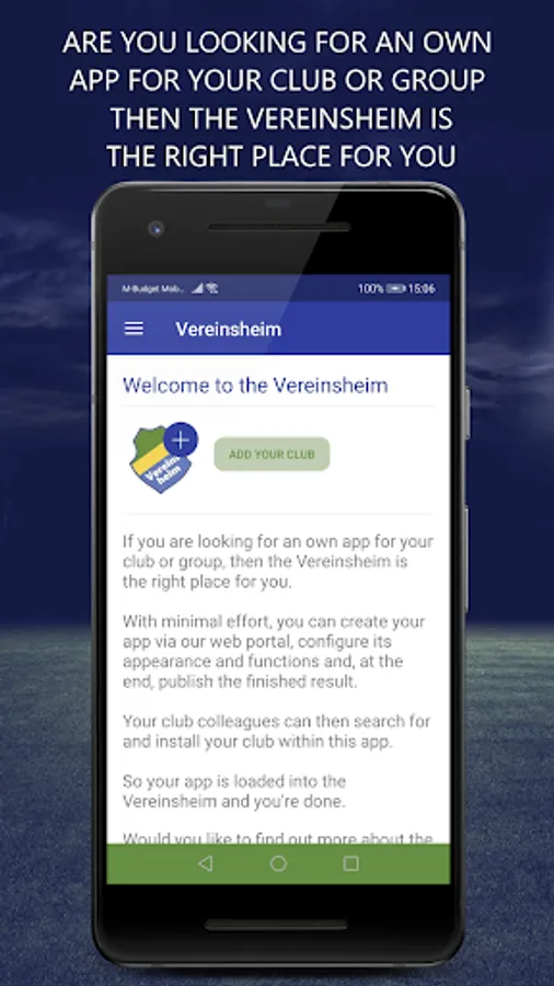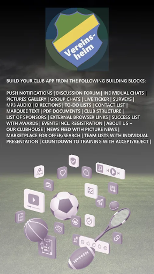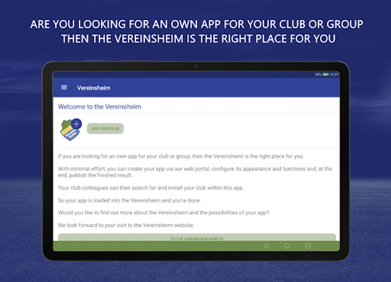 If you are looking for an own app for your club or group, then the Vereinsheim is the right place for you.