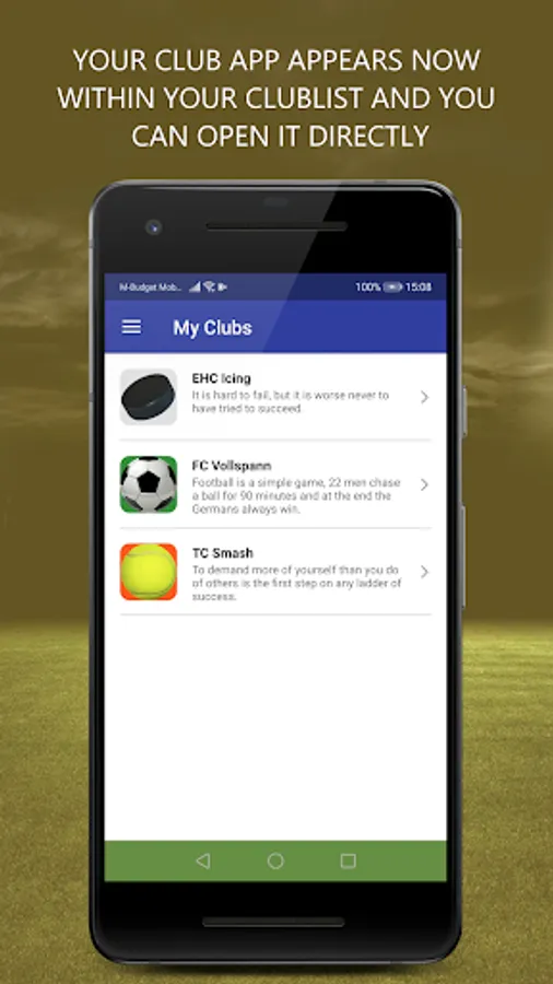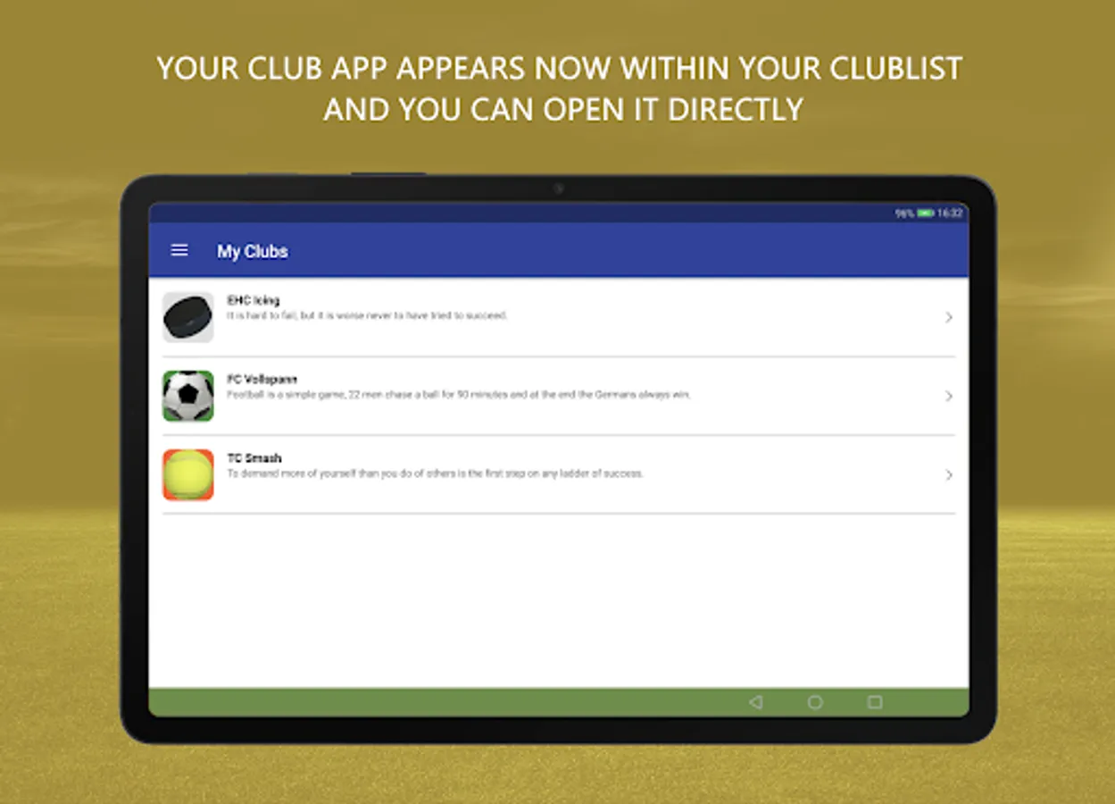 With your own club app, digitalization in your club is accelerated and club life is enriched by contemporary means.
