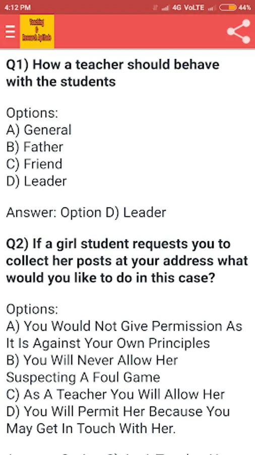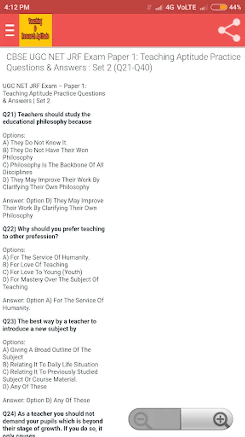 Teaching Aptitude MCQ Questions with Answers
