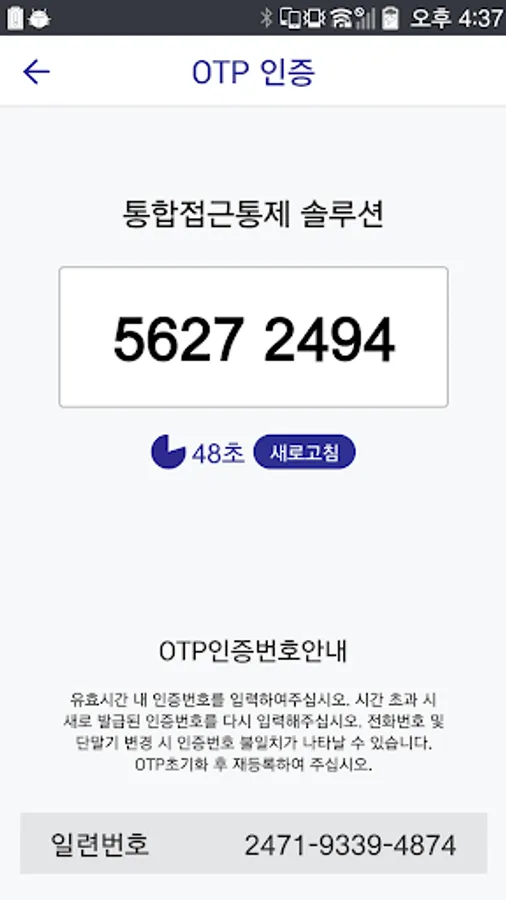 site using the t-MOPT serial number and registration number to sign up for OTP authentication. t-MOTP issue of the site after issuance of the OTP one-time password to login ID, password, along with the details. One-time password is automatically updated every 60 seconds.