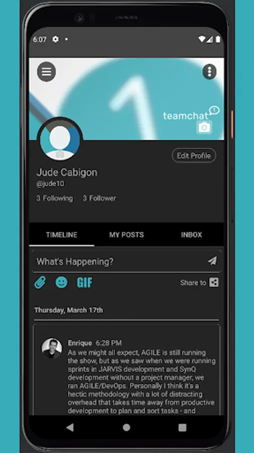 Introducing Teamchat! Team communication featuring GIF and Emoji reactions, file sharing, private and public channels, a dedicated Inbox for direct messages, and more.