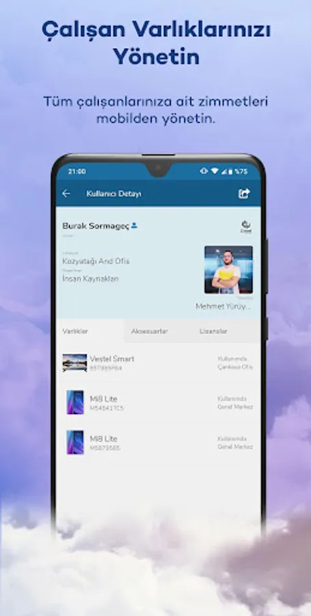 You can easily follow the embezzlement provided to your employees, you can easily report locations and department (group) assets working in different disciplines.