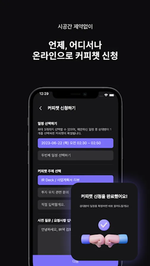 밀도 있는 대화를 통해 투자 유치에 필요한 시간과 노력을 줄입니다.
