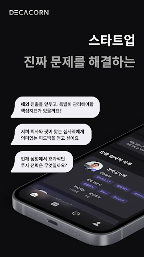 창업가의, 창업가에 의한, 창업가를 위한 ‘대화형’ 솔루션, 데카콘 커피챗을 만나보세요.
