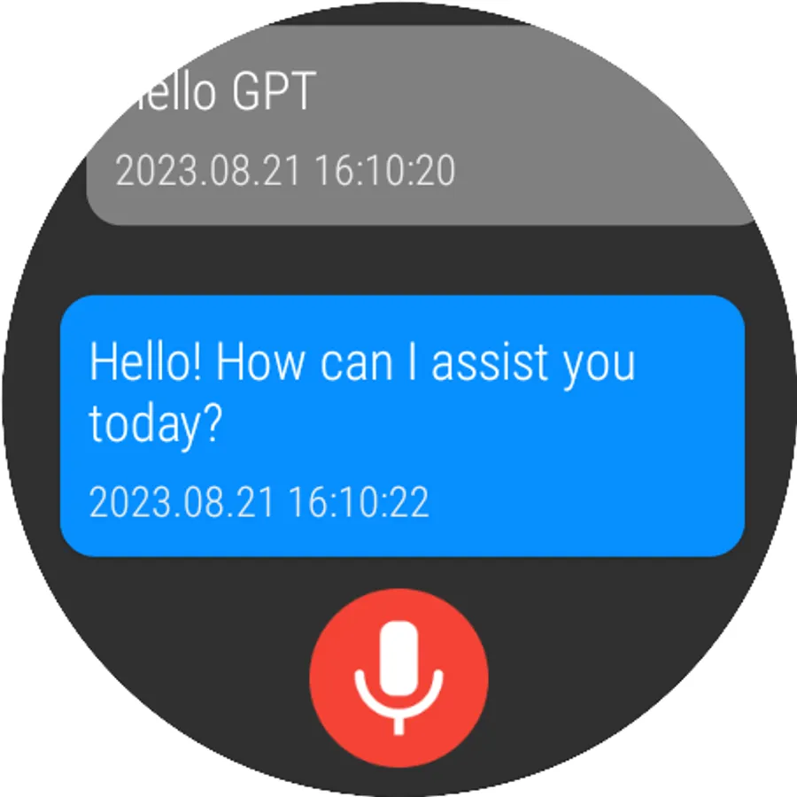 Run the smart watch app, and if you command by voice, Chat GPT will respond with a message.