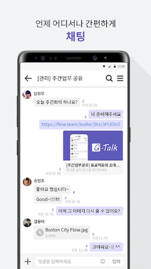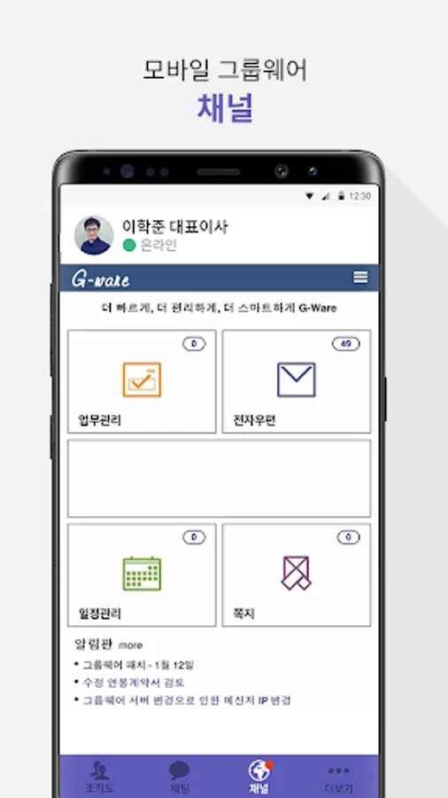 G-Talk notifies you by chatting message when new contents are registered in G-Ware's email, electronic payment, bulletin board, schedule, and makes it easy to check on mobile. In addition, you can conduct business through chat with members of the company, enabling organic cooperation.