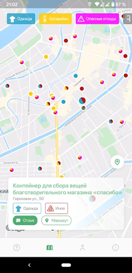 You can build a route from home to work or school, and we will show the container closest to your route with separate collection.